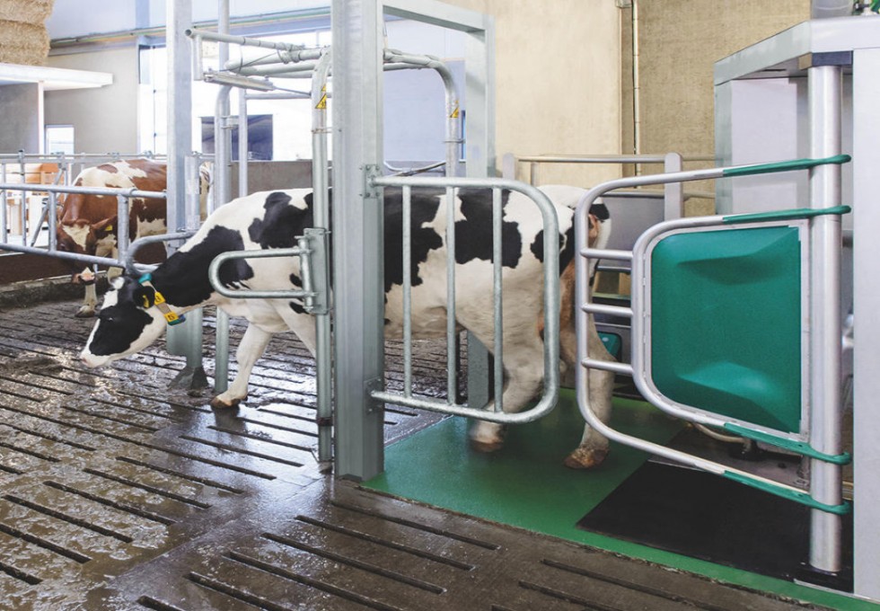 Przyjazna dla krów konstrukcja boksu z szerokimi bramkami zapewnia bezpieczne i szybkie wchodzenie i wychodzenie zwierząt. Robot automatycznie dopasowuje się